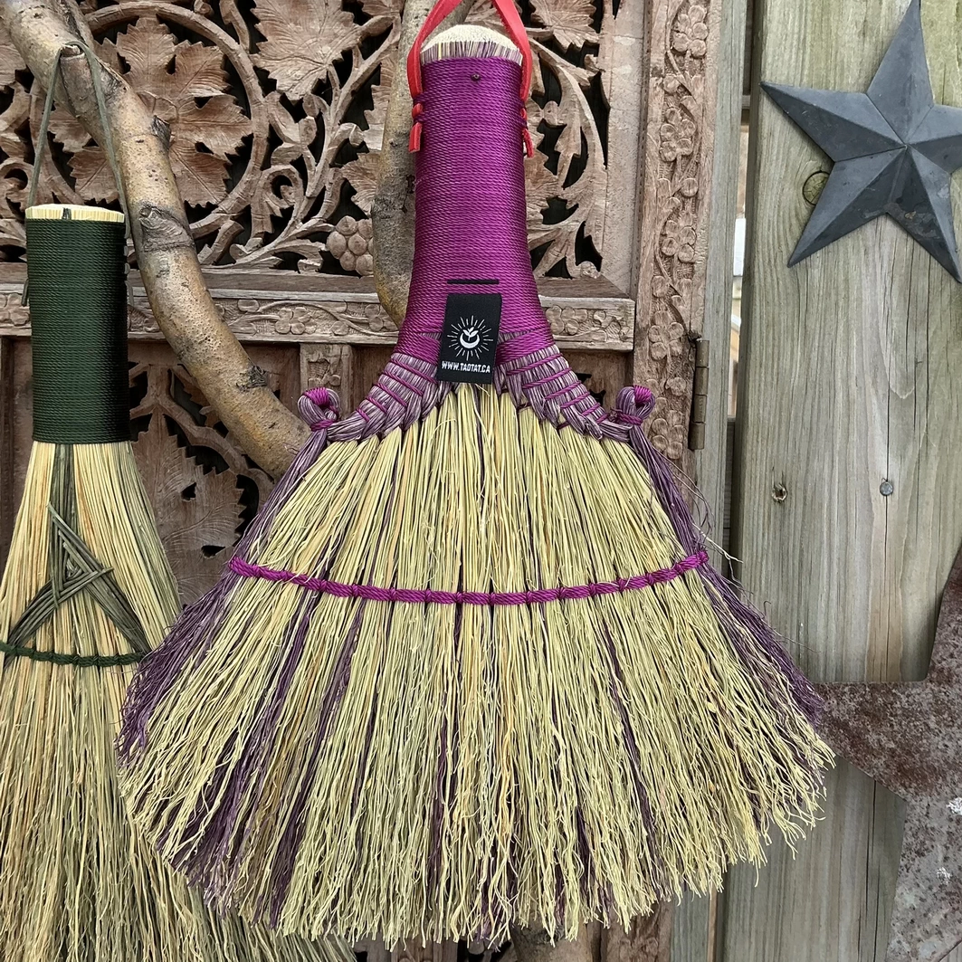 Imbolc is the Quickening time, promise of spring and growth, and time for renewal, planting seeds and cleaning away the bitterness of Winter. These brooms are for cleansing your homes and sacred spaces and have been adorned with a broomcorn woven Brigid’s Cross to honour the Goddess of the Hearth, the Forge and Creation. Use these brooms to honour the Midwinter fire festival, the midway point between Winter Solstice and Spring Equinox. Or use them anytime you need to clear a space!